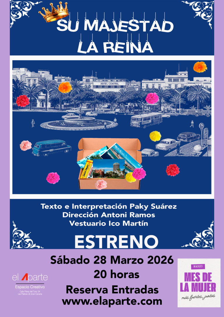 Su Majestad la Reina es un monólogo ambientado en la eternidad, donde Lolita Pluma-figura emblemática e inseparable del Parque Santa Catalina toma la palabra para reclamar su verdadera identidad; María Dolores Rivero Hernández.